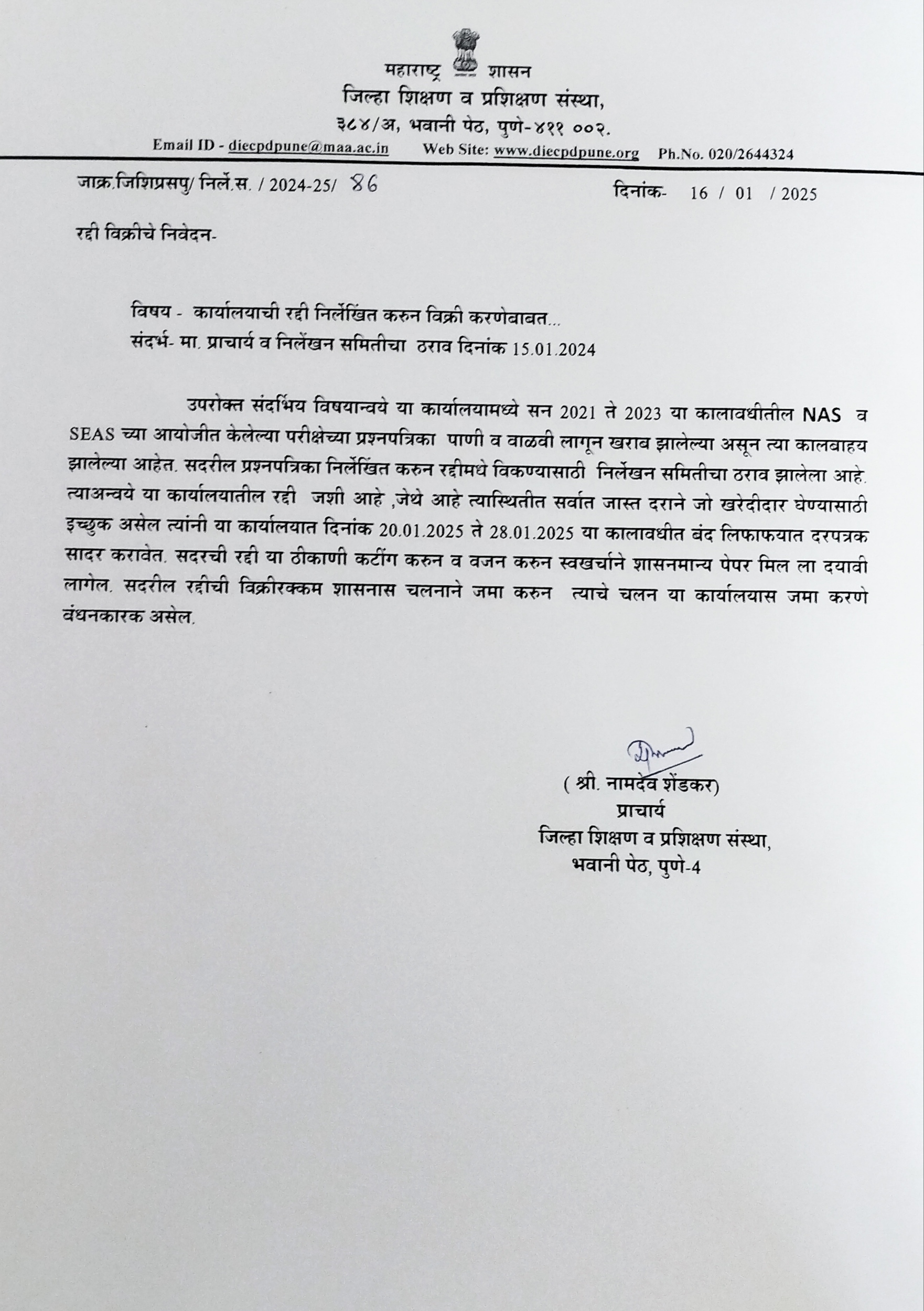 रद्दी विक्री निवेदन